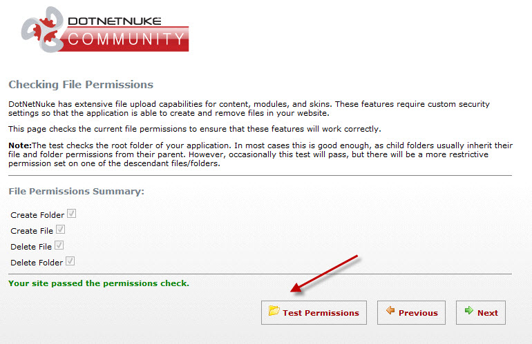 Nếu muốn kiểm tra quyền truy cập folder (mà chúng ta đã thiết lập trong quá trình cài đặt), nhấn vào “Test Permissions”